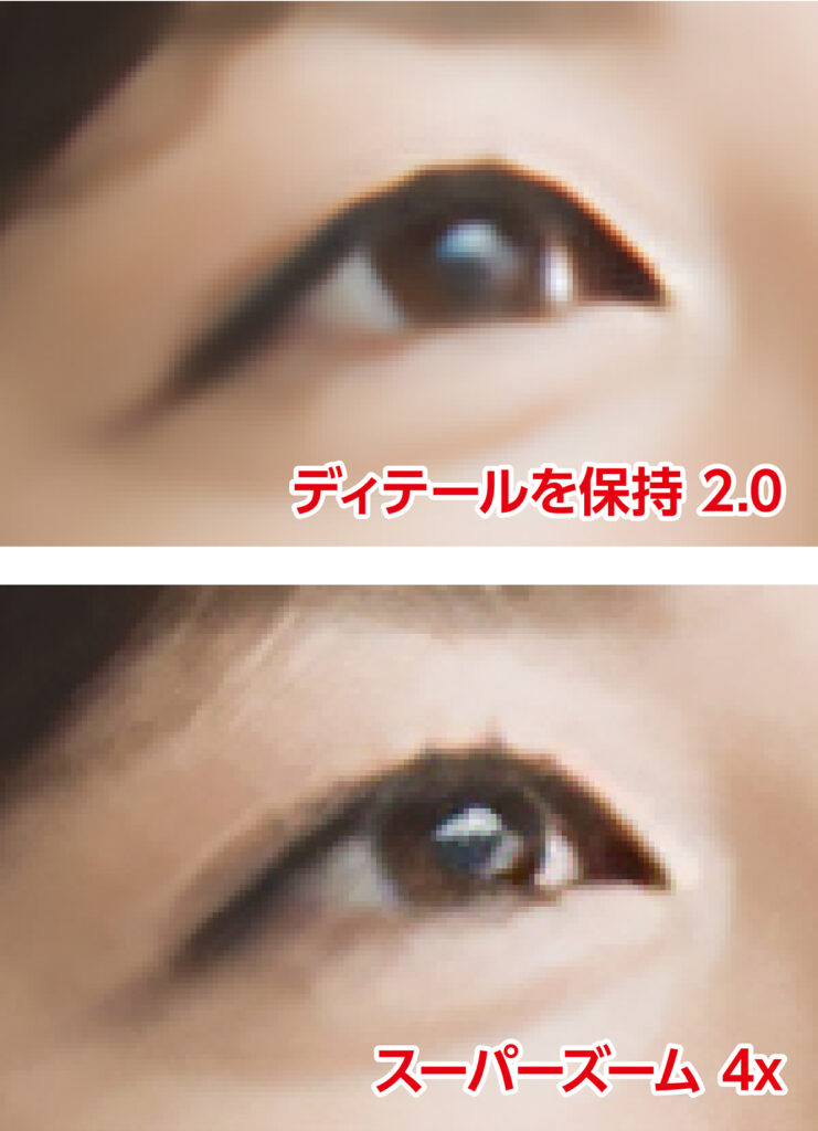 「ディテールを保持 2.0」を使って解像度を上げた画像との比較です。