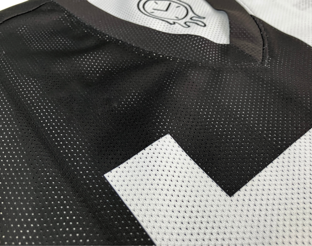 [デザイン]・・・LIMITの『L』を裾のギリギリに配置し、モノクロの切り返しによってチーム名をデザインに取り入れました。
