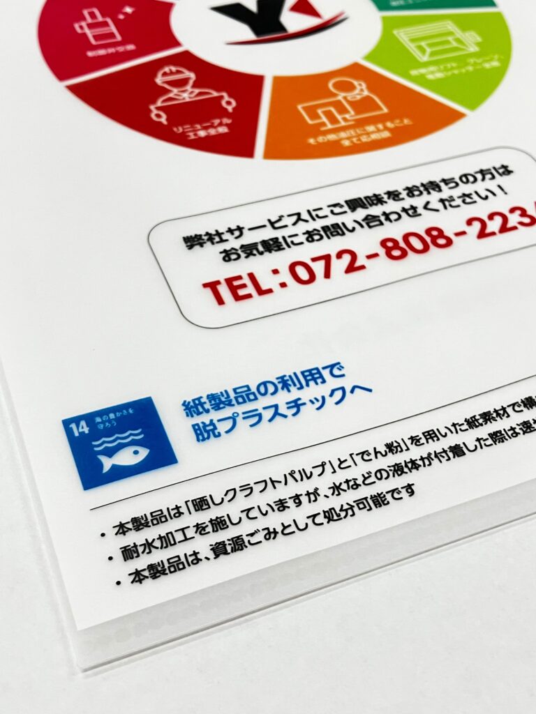 デザイナーの提案で、表裏が干渉しない(印字情報や会社名などが読みやすい)配置で仕上げました。