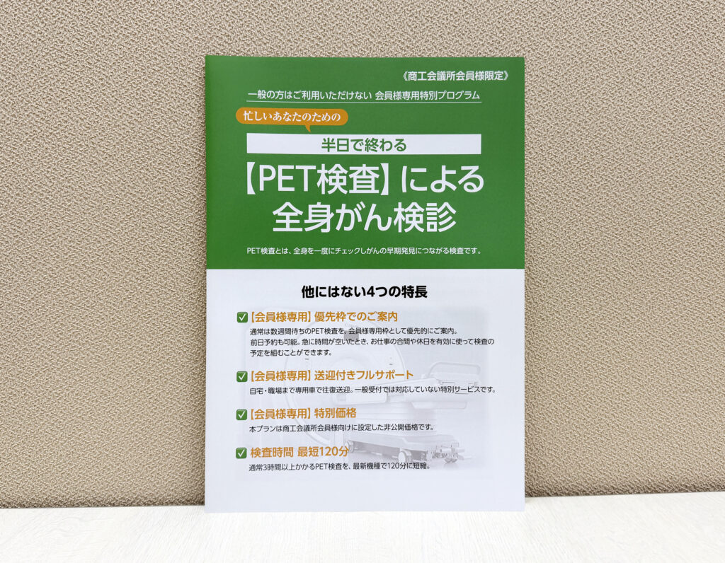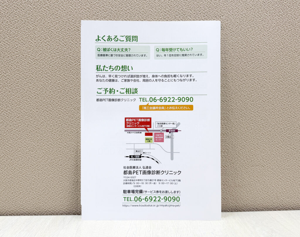 A3二つ折り、クライアント様のイメージカラーである緑をベースに、情報をわかりやすく簡潔にレイアウトしました。